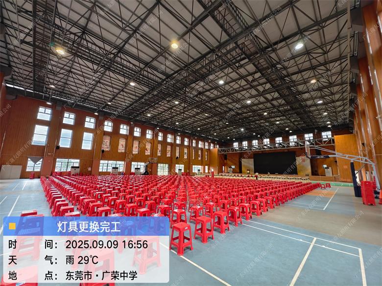 目q?/strong>Q?/strong>?2025q?月,q东商友照明有限公司以专业高效的施工标准Qؓ(f)东莞沙田实验中学球馆提供LED工矿灯、球场灯?qing)全程安装l保服务Q通过模块化施工与_և光效调试Q确保灯L(fng)l在zd启动前全面投用,为校园活动提供专业照明保障,助力zd圆满丑֊?span style="text-indent: 28px;">