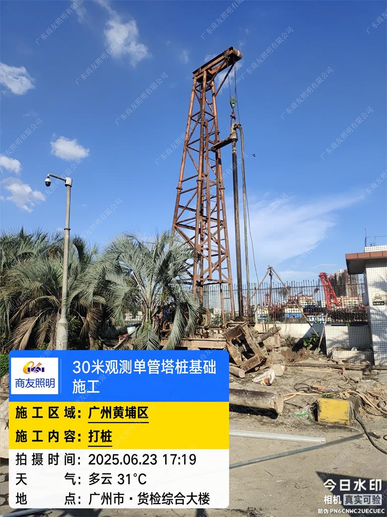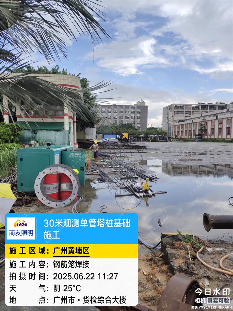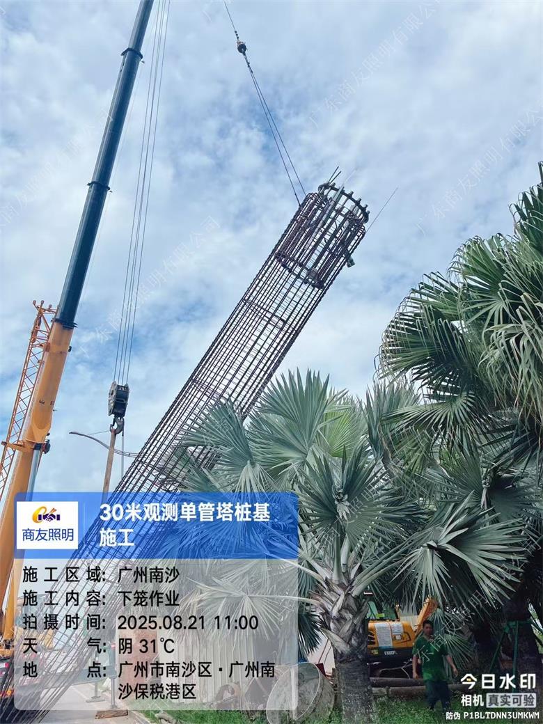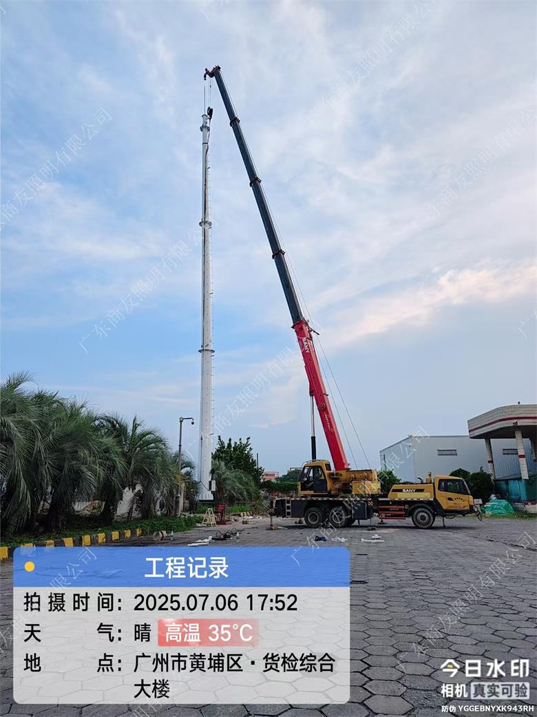 项目简述;环境环保检测设备塔主要用于大气、水质、土壤等环境要素的监测,常见类型包括大气监测塔、水质监测塔等。2025年6月广东商友照明公司30米环境监测设备塔助力广州港口工程,助力城市可持续发展。